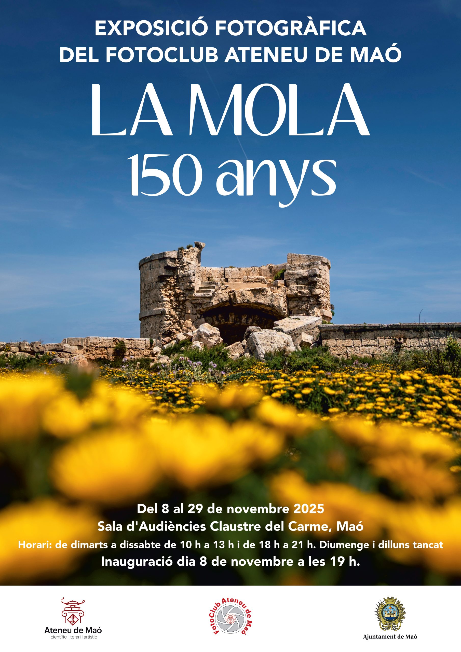 Exposició fotogràfica a càrrec del FotoClub de l’Ateneu de Maó amb motiu del 150 Aniversari de la fortalesa de La Mola, a la Sala d’audiències Claustre del Carme de Maó.
